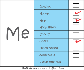 A self-analysis of what you are good at and certain qualities you have will really help in this step. You can do with in few words, using the right adjectives that defines your likes, capabilities and interests as in the chart: