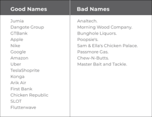 - Avoid names that could limit your business as it grows: Imaging if Konga Shopping is called ‘Lagos shopping’, though not a bad name, but its limiting in perceived scope.